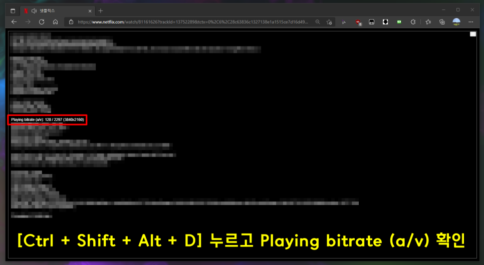 PC 웹 브라우저 재생 환경에서 넷플릭스 화질 확인 단축키