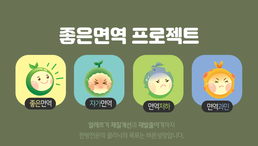 아이 어른 모두 기본적인 면역시스템이 잘 갖추어져야 이런 병에 걸릴 가능성을 낮출 수 있습니다. 면역력이 약해지고 균형이 깨지면 평소 잠잠하던 알레르기 반응이 더 심해지고 감기 같은 사소한 질병도 쉽게 몸을 공격하기 때문이죠.