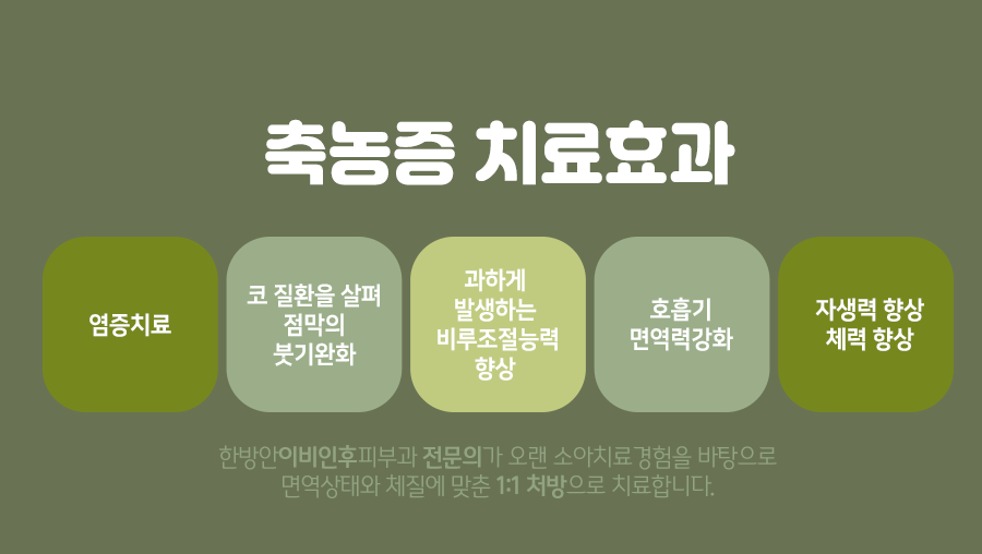 따라서 본 의료인력은 축농증의 증상으로 인해 찾아주실 경우 표면의 불편함만 바라보시는 것이 아니라 몸 깊은 곳에서 다양한 통증을 유발할 수 있는 주요 원인을 찾아내고 이곳에서 관리가 이루어질 수 있도록 정성을 다하고 있습니다. 그래서 코 안쪽의 위화감이 장기화되고 있고, 아이가 통증과 불편을 호소하고 있다면 하루라도 빨리 적절한 대처를 시작해 보십시오.