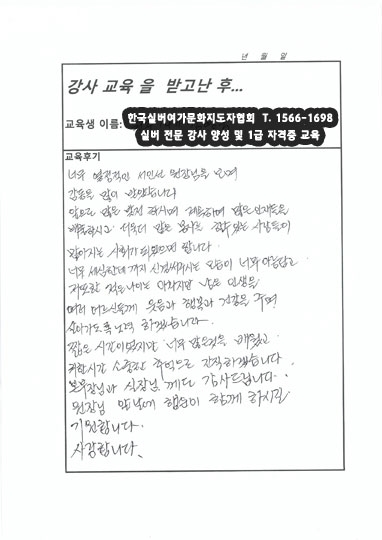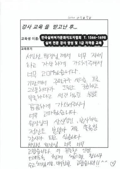 이건 !! 어제 들으신 노래강사 자격증 교육의 포근포근 후기 !! 전국 투어 원주에서 진행된 실버 양성 교육 및 자격증 발급 교육을 받고 많은 리뷰를 남겨주셨습니다. ^^