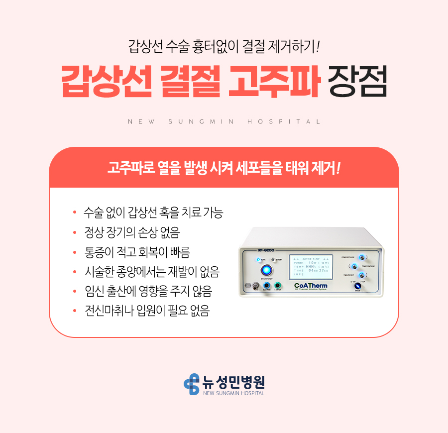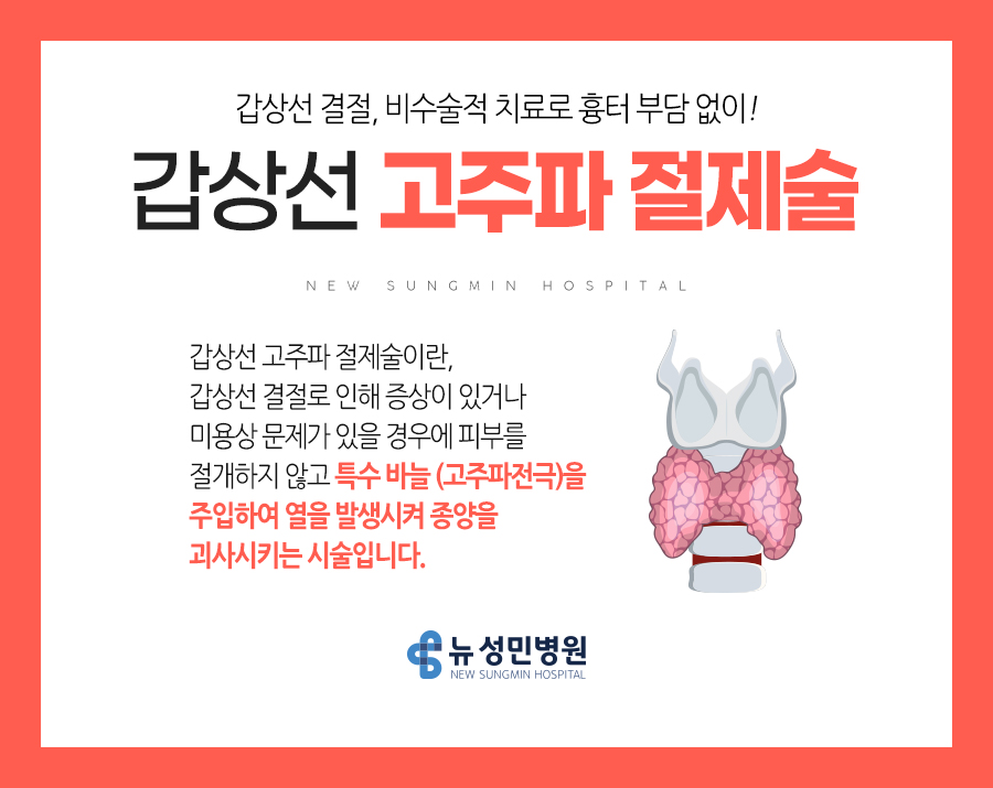 수술없이 해결할 수 있어요.: 갑상선 고주파 절제술 뉴성민병원에서는 인천 갑상선암을 치료하기 위해 고주파 절제술을 이용하고 있습니다.