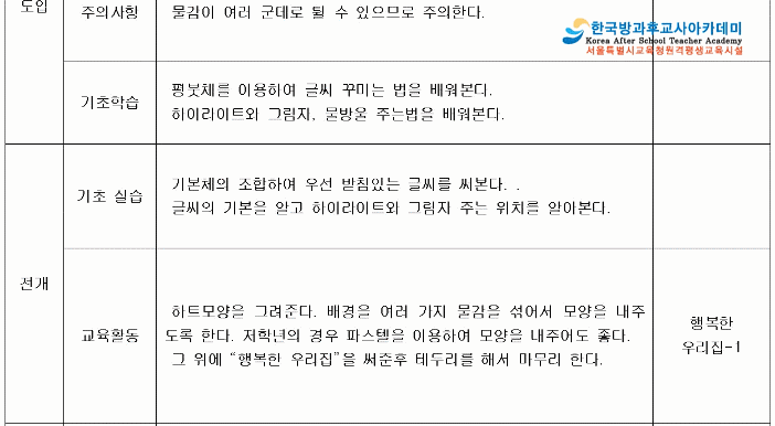 제가듣는곳은한국방과후교사아카데미!모든교육이온라인에서진행되며자택에서POP자를제작하고쉽게배울수있습니다.