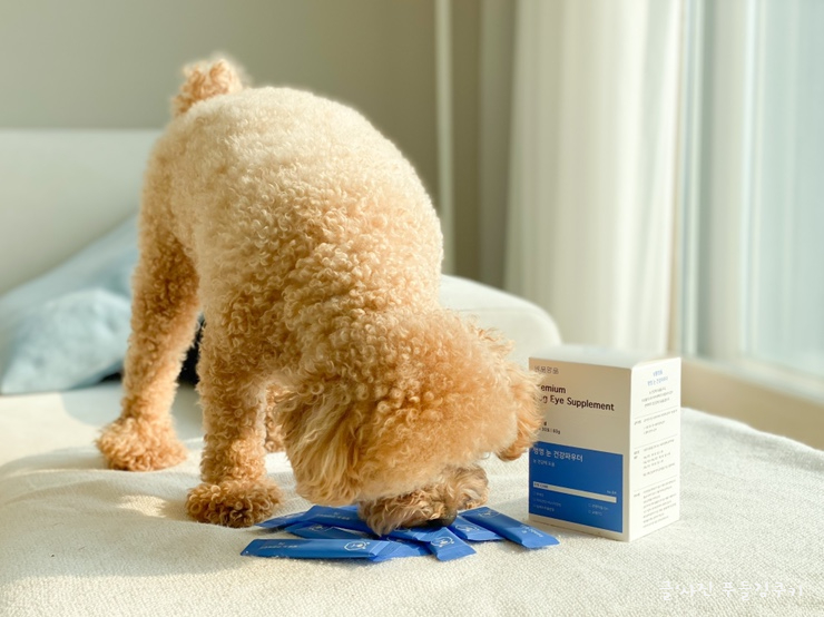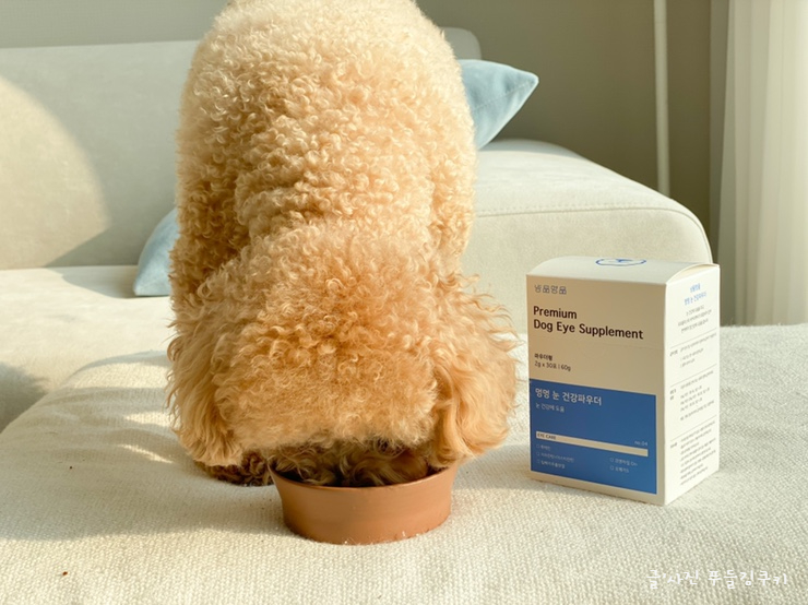 눈물 자국뿐만 아니라 노령견이 되었을 때 피할 수 없는 안과 질환의 하나인 백내장&녹내장도 사전에 예방하지 않으면 어떤 견종이 될 수 있는 질환입니다. 백내장이나 노화로 인한 시력 저하도 미리 예방하지 않으면 안 된다고 생각해서, 푸들 쿠키에 눈에 좋다는 소량의 브로콜리도 평소에 주고 있었습니다. 한계가 있는 것 같아서 눈 영양제를 이번에 주기로 했어요.