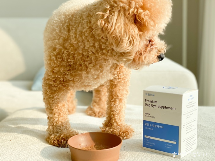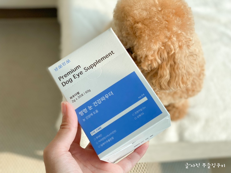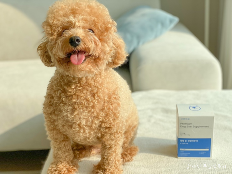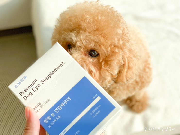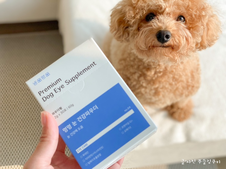 푸들 쿠키가 오래 좋은 거 많이 볼 수 있게 눈 건강 지켜드리고 싶어요.이 제품은, 반려동물 뿐만이 아니라 반려견의 행복한 생활을 목표로 하는 「냥콘」의 보충제 시리즈로, 헬프 유기 동물 센터의 「박기범 수의사」추천 개의 눈의 건강 전용 영양제입니다. 특히 눈물제거에 효과적인 영양제라서 더욱 관심이 많았던 제품입니다.