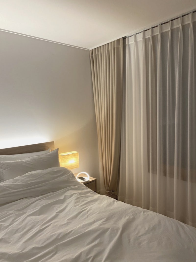 드디어 독립했어요. 이왕 할 거면 다 좋은 걸로 진행했어요. 헤헤 사실 준비하면서 커튼을 몰랐는데 우연히 알게 된 동대문 인정 커튼! 마침 동대문에 매트리스 커버 일정이 있어서 인심 커튼 동대문점을 예약하고 방문했습니다.저는 여성분께 상담을 받았는데 제가 아직 어린 나이라 질문도 많고 고민도 많이 했는데 너무 친절하고 상담 후 몇 번 통화에도 정말 친절했어요, 감동적으로 계약하고 좋은 마음으로 구매한 커튼 리뷰는 말이 필요없죠? 정말 만족해요. 저는 주거용 오피스텔에 살고 있으며 25평형과 비슷합니다.:) 방2, 거실1, 주방, 화장실, 부모님 집에서 암막 블라인드였는데 햇빛 때문에 정말 스트레스 받았어요.이번에는 암막에 기준을 많이 마련하여 골방+거실은 우선 혼자 살기 위해 안방은 찰과 100% 암막커튼으로 진행