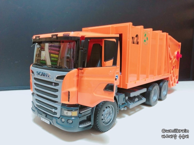 스카니아 크레인 트럭은 돌레. 레버가 총 3개 있습니다. 수직으로 올라가는 훅 레버의 높이가 올라가는 레버. 길이가 내려가는 레버가 무슨 뜻인지 잘 이해가 안 돼요. 움직이는 이미지로 보여드릴게요.이제 장비 나오는 길.위로 올라가는 길.레버로 빙글빙글 돌리면 크레인이 내려옵니다. 길이는 꽤 길어요. 갈고리에 작은 자동차도 걸어서 끌어올리고 다른 자동차를 걸어서 쭉 당기는 놀이도 할 수 있습니다.문도 열리는 포인트 옆에 지지대도 열어놨어요.버팀대가 있어서 세울 수 있어!몸통 크레인은 360도 회전 가능! 우리 아기가 가장 좋아하는 크레인 장난감으로 오늘 포스팅 중에 가장 포인트가 많습니다. MANTGS 탱크 트럭 가격 : 115000원어린이 장난감 탱크입니다. 중장비 장난감답게 역시 큽니다. 특징은 물을 넣고 호수를 분무할 수 있다는 것!바퀴가 정말 빙글빙글 잘 굴러요. 저유탱크 뒤쪽에 사다리도 장착되어 있습니다.이렇게 위를 누르면 펌프가 생깁니다. 노란색 뚜껑은 옆으로 돌리면 물을 채울 공간이 나옵니다. 아래 온오프 레버가 있고 호수를 연결하면 물이 조금씩 나오는 것이 특징입니다.펌프는 최대 15회까지 부탁드립니다! 물이 샐 가능성이 있어요.시멘트 믹서 가격 : 120000원다음은 시멘트 믹서입니다. 높이는 19.5cm, 길이는 29cm, 무게는 2800g으로 상당히 무거운 편입니다.아기 장난감 시멘트 믹서의 빨간 프론트는 레버로 돌리면 저렇게 빙글빙글 돌아요. 우리 아기는 어렸을 때 돌리다가 앞으로 구부려서 바닥에 머리를 쿵쿵 친 적이 있어서 제가 옆에서 꼭 지켜보는 장난감입니다.특징은 뒷부분에 작은 블록을 넣으면 들어가서 풀어서 놀 수 있어요. 하지만 들어가는 것도, 빼는 것도 쉽지 않기 때문에 장난감을 털어 겨우 벗은 적이 있습니다. 청소 트럭 가격: 110000원유아용 중장비 장난감 종류가 정말 많아요.택배차, 청소차 보는 재미도 꽤 있어요. 청소 트럭의 디테일을 봅니다.이 차량의 특징은 차량과 쓰레기 수거대 두 가지가 여분으로 있습니다. 나는 이번에 포스팅하면서 사용하는 방법을 처음 알았어요. 도대체 저게 뭐야? 했는데 아래 레버를 위로 올리면 수거대 2개가 위로 올라갑니다.왼쪽 레버를 돌리면 회수기가 안으로 이동한다고 합니다. 다시 한번 사용해볼게요. 별거 아닌 청소 차량인 줄 알았는데 장난감 차 숨기기 놀이가 있다니! 뉴홀랜드 T7, 프론트 로더 가격: 95000원왼쪽 레버를 돌리면 회수기가 안으로 이동한다고 합니다. 다시 한번 사용해볼게요. 별거 아닌 청소 차량인 줄 알았는데 장난감 차 숨기기 놀이가 있다니! 뉴홀랜드 T7, 프론트 로더 가격: 95000원차를 잘 몰라서 명칭이 너무 낯설어요. 다른 중장비 자동차에 비해 사이즈가 작은 편이고 무게는 1400g으로 가벼운 편입니다.제가 잡고 있는 부분이 프론트 로더래요. 손으로 위로 각도를 올리면서 조절할 수 있고, 아래로 올렸다 하면서 놀 수 있습니다. 양쪽 문이 열려 특징이 많은 장난감이라고는 생각하지 않았습니다만, 아이들이 좋아하는 장난감입니다. 도로청소차가격 : 130000원세 번째 차가 청소차.다음은 도로 청소차입니다. 자동차 3총사 중 윗줄 오른쪽에 있는 아이입니다.차는 아주 잘 나왔어요. 잘 나왔어요.볼게요.주황색 도르래가 레버얘 장난감도 크고 무게는 2300그램으로 무거워요. 특징은 양쪽에 브러쉬가 있다는 점입니다.위에서 레버를 돌리면 청소 브러쉬가 아래에 설치됩니다. 청소차 진짜 저 원리로 작동할 것 같아요.그리고 바닥을 열심히 닦습니다. 자동차 뒤쪽에는 물을 내뿜는 호수가 있어 움직일 수 있고 적재함도 상하로 움직입니다. 유모차 장난감 가지고 놀기 좋죠? 만트럭 가격 : 100000원다음은 만트럭이고 무게는 2200g입니다. 우리가 생각하는 트럭은 동일합니다. 짐받이가 있어서 위로 올리고 집에서 내릴 수 있는 기능을 합니다.블루더 가격은 정말 잘 책정해놨는데 트럭은 좀 그래? 했네요.어린이 자동차 장난감의 세계는 어디까지인지. 아직 아기라서 자동차 특성을 살려서 정교하게 놀지는 못해요.하지만 조금 더 크면 자동차 기능을 알면서도 놀기 좋을 것 같아요. 특히 남자아이에게는 딱인 것 같아요.가격은 비싼 편이지만 차가 튼튼하고 부속품도 팔고 있어서 오랫동안 놀기 좋을 것 같아요. 다른 종류도 궁금한 브라더 중장비 장난감 리뷰는 이걸로 끝납니다!#블루더장난감 #중장비장난감 #포크레인장난감 #자동차장난감 #장난감포크레인 #장난감굴착기 #포크레인레고 #어린이자동차장난감 #유아자동차장난감 #장난감자동차 #경찰차장난감 #6개월아기 #톱니고리 #교구