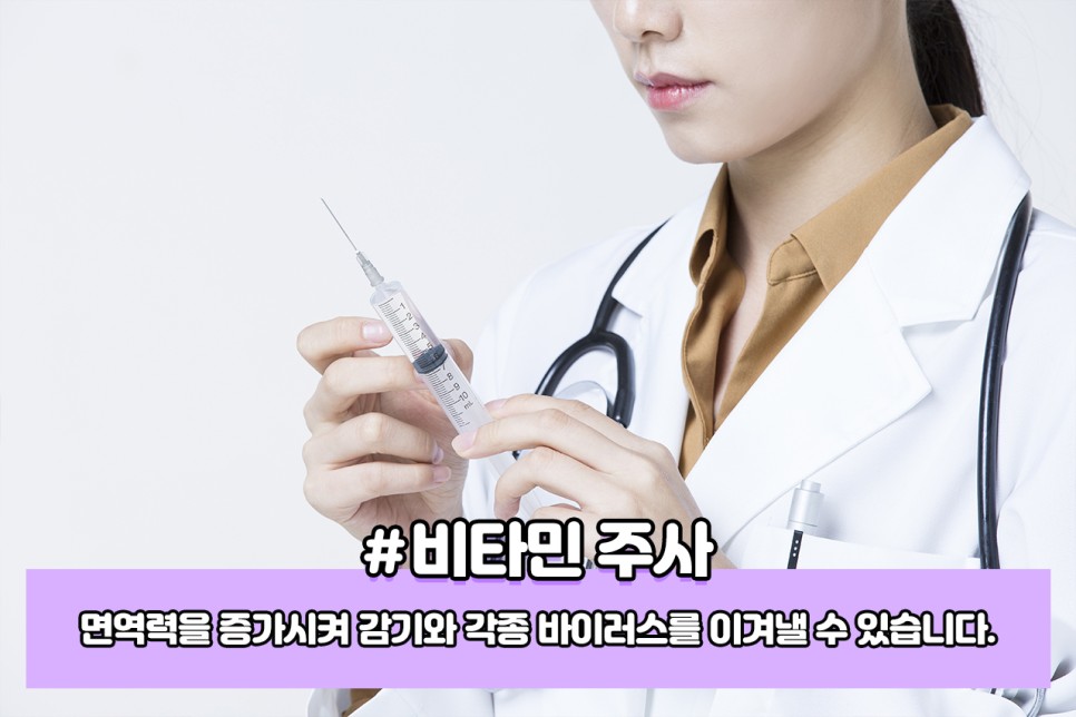 비타민주·사과정이 먼저 어떤 효과를 위해 이 방법을 이용할 것인지에 대해 상담을 받고 진행하는데 짧은 진료시간과 주·사를 모두 받기까지 오랜 시간이 걸리지 않기 때문에 부담없이 진행할 수 있고 짧은 기간 내에 꾸준히 맞아야 하는 것은 아니므로 한번 관리를 받으시고 몸이 불편하거나 더 필요할 때 재방문하시면 되므로 부담이 없습니다.