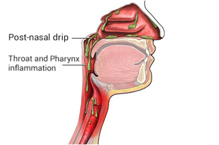 과도한 양의 점액이 코의 점막에 의해 생성되는 것을 말합니다. 과도한 점액은 목구멍과 코의 뒷면에 쌓입니다.비염, 부비강염, 위식도역류병(GERD)으로 인해 생길 수 있으며 식도운동 장애로 생길 수 있습니다.