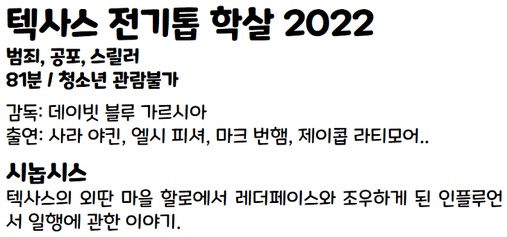 항상 2월 18일(금)에 개봉한 넷플릭스 오리지널 공포영화 <텍사스 전기톱 학살 2022> 이야기를 해보려고 해요.