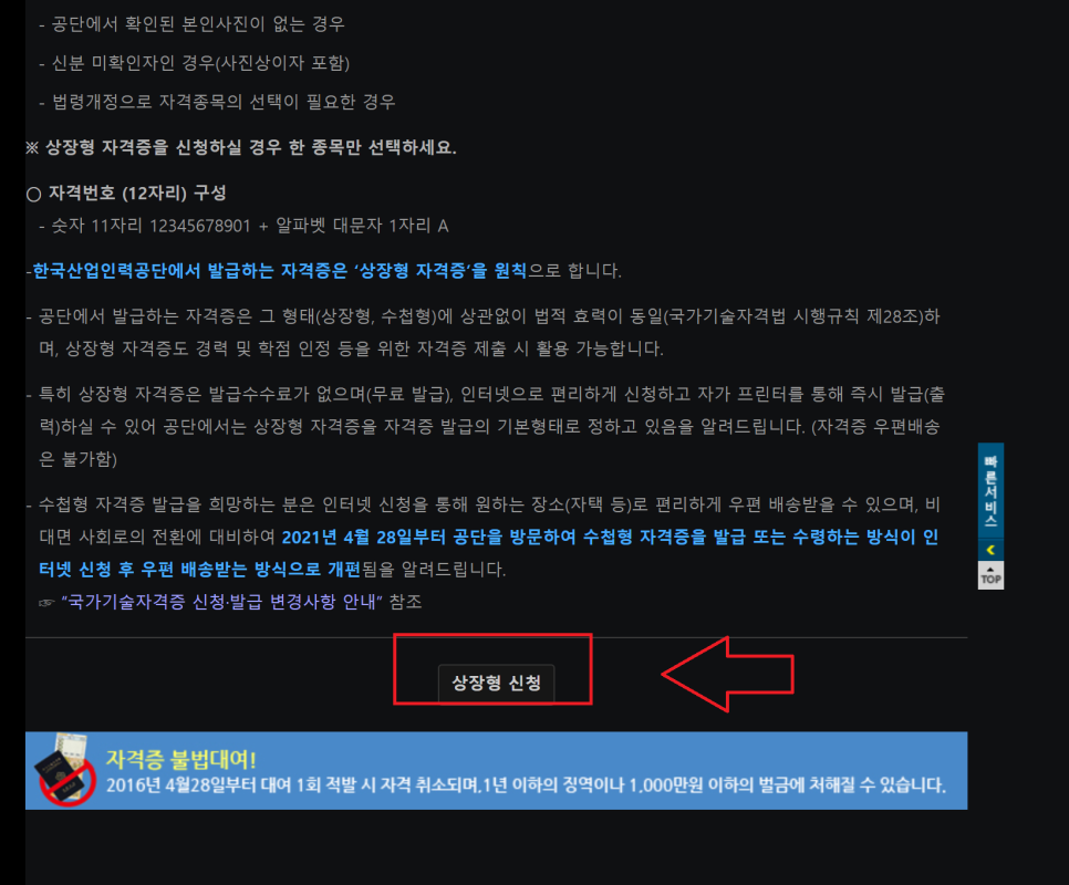 ‘상장형 자격신청’ 클릭