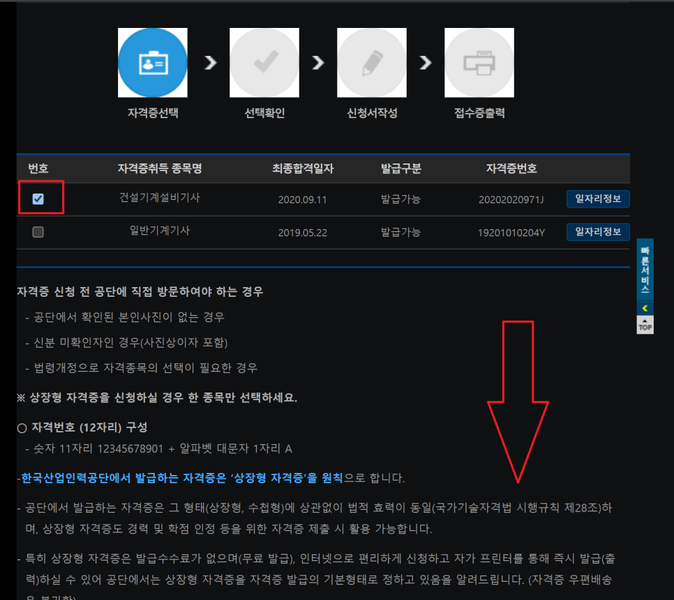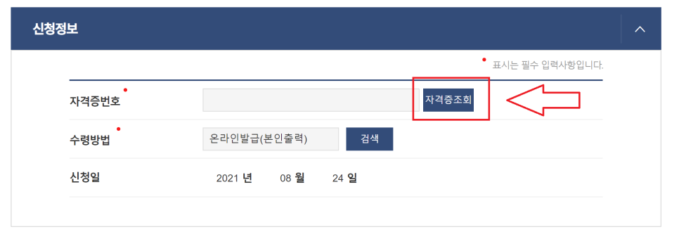 ‘자격증 조회 클릭’