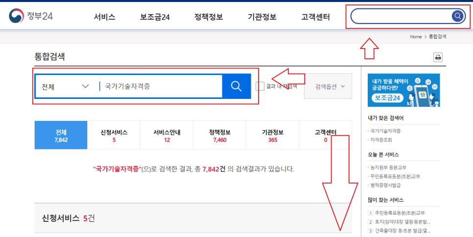 정부 24개 검색 국가기술자격 검색