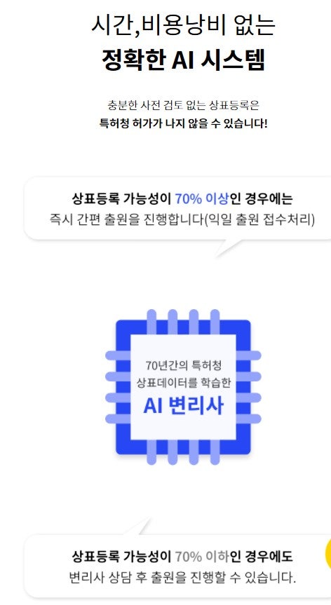 일반적인 특허청의 상표등록 성공률은 50% 정도라고 알려져 있습니다. 수임료 몇 십만원을 먼저 받고 출원에 실패해 돌려주지 않는 특허사무소가 많다고 해서 골치 아플 때가 정말 많습니다. 내가 네임텍 상표로 절차를 밟게 된 이유는 단계별로 진행이 쉬워지고 깔끔하게 진행 절차를 알려줘서 금액도 부담스럽지 않기 때문입니다.