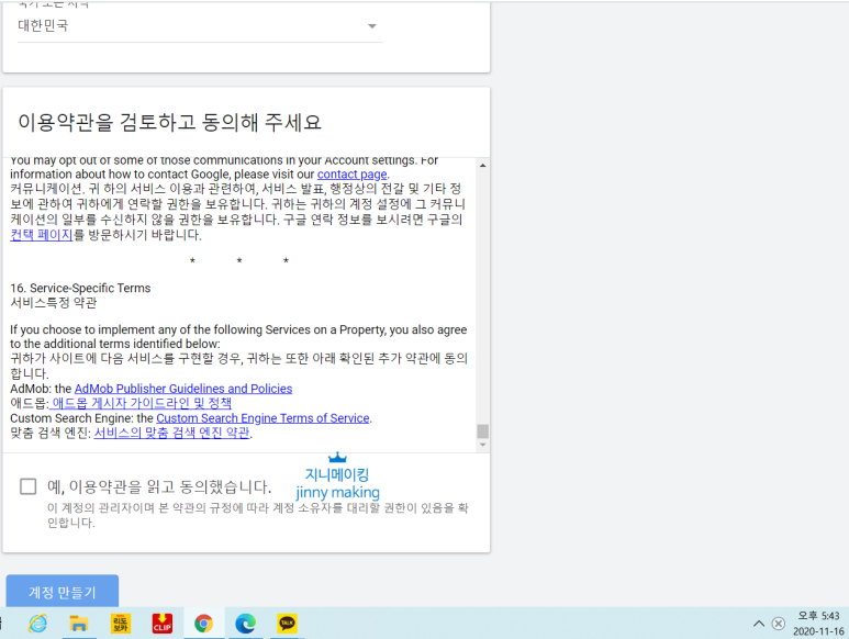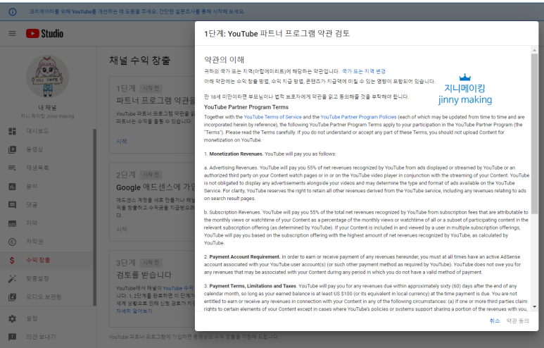 1단계 : 파트너 프로그램의 약관을 검토합니다.약관에 동의해 주시면 간단하게 넘어갑니다.