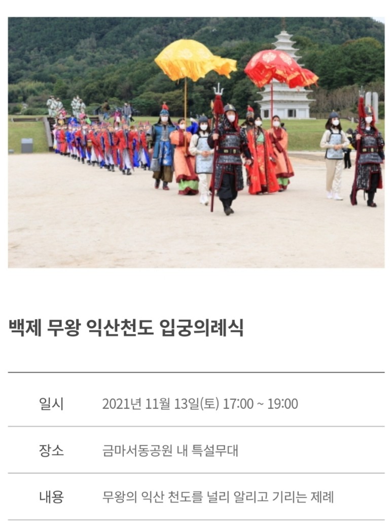 단계적인 일상 회복, 위드코로나에 따라 11월 6일부터 #익산에서 #서동축제가 시작되었다.