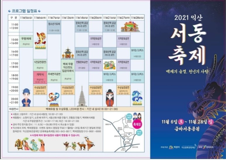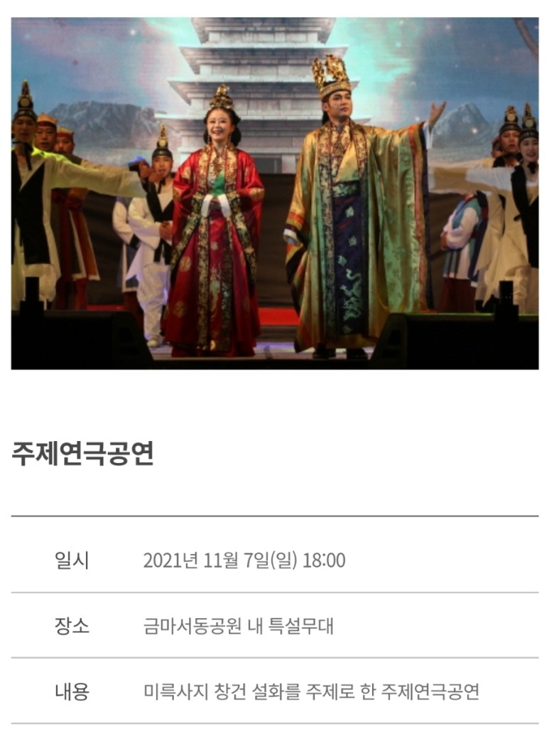 백제의 숨결, 천년의 사랑’ 익산 서동축제로 여러분을 초대합니다.seodong.iksan.go.kr 전라북도 익산시 금마면 옛길9길 41-14