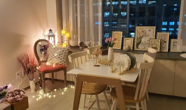 액자도 휘었는데 느낌이 좋잖아.한쪽에는 조명과 삼각대가 널려있는데 삼각대는 이미 분리상태 ㅋㅋㅋ상태가 별로 좋아보이지는 않았는데 삼각대가 없어서 계속 썼어요.부엌에는 식기가 있습니다.더러움 없이 예쁘죠?컵과 식기가 넉넉해서 다행이에요.컵도 소주컵 맥주컵 와인잔 다 있어!나이프도 크기별로 ㅋㅋ화장실은 냄새가 나지 않았어요.비데도 설치되어 있고 클렌저랑 치약까지 있는 건 다 있어요.휴지도 너무 많아 ㅋㅋ 헤어드라이기도 있고 다 있는데 수건이 없죠?원할 경우 따로 말하라고 했는데 말을 안했더니 리얼 하나도 안 줬어요.꼭 달라고 해야하니 참고링 해주세요.손을 씻고 자연건조를 했어요.그리고 한쪽에는 전자레인지와 전기주전자, 밥솥 등이 구비되어 있습니다.보드게임! 링고리가리?쥬르마블 했는데 재밌었어요. ㅎㅎㅎ복층 타입이라 2층으로 올라가면 잘 수 있는 공간이 따로 있습니다.미키미니 ㅋㅋ 신혼집 같네요.^_^아늑한 잠자리강남역 꽃같은 파티룸 11호점 야경☆별로 멋지지는 않지만 사람들이 돌아다니는 모습을 봐도 재미있어요.사진도 다 찍었겠다. 전자레인지로 음식을 데우려고 했는데 원래 전자레인지가 있는 자리 주변에는 아무리 찾아봐도 콘센트가 안 보이거든요. 그래서 바닥에 놓고 돌렸어요.도대체 어디에 두고 돌리는 걸까요?초밥이랑 과자, 신정떡볶이, 치킨 조합 진짜 대박이죠?나름 인스타 감성샷도 남겨봐~혜민이 생일파티라서 레터링 되어있는 케익을 가운데에~! 남양주 마석에 있는 케익샵이었는데 좋아하는 디자인으로 잘 만들어주셨어요.정말 좋아했던 오늘 생일의 주인공! (만족)이제 본격적인 회식 전에 30대 여성들은 숙취해소제를 먹어요.(+밀크시슬) 응. 매운 거 싫어해.(적게 먹을 생각 없어)맥주와 콜라로 건배!하는 감성샷도 찍어보고 ㅋㅋㅋ남이 찍어준 척 우린 모른 척한잔하는데 누가 몰래 찍은 척.소녀감성으로 우정꽃반지와 꽃팔찌도 했어요.네 명 다 손톱에 아무것도 안 한 게 뭔가 재미있었어. 손톱도 왜 잘랐어?진짜 끼리끼리네요.왜 했는지 모르는 1, 2, 3, 4샷.여기서도 1, 2, 3, 4ww정다와 해무는 숙박을 하고 갔는데 아침에 일어나 보니 이런 풍경이었다고 한다.코로나 때문에 강남역도 사람이 없어.꽃같은 파티룸 11호점 서울특별시 강남구 역삼동 822-7 면화미러트 4층강남역 12번 출구에서 도보 5분 거리에 가는 꽃다운 파티룸 11호점 후기였어요~ 끝!#강남역파티룸 #강남파티룸 #서울파티룸 #강남브라이덜샤워 #서울브라이덜샤워 #꽃다운파티룸 #꽃다운파티룸11호점 #생일파티 #강남역생일파티