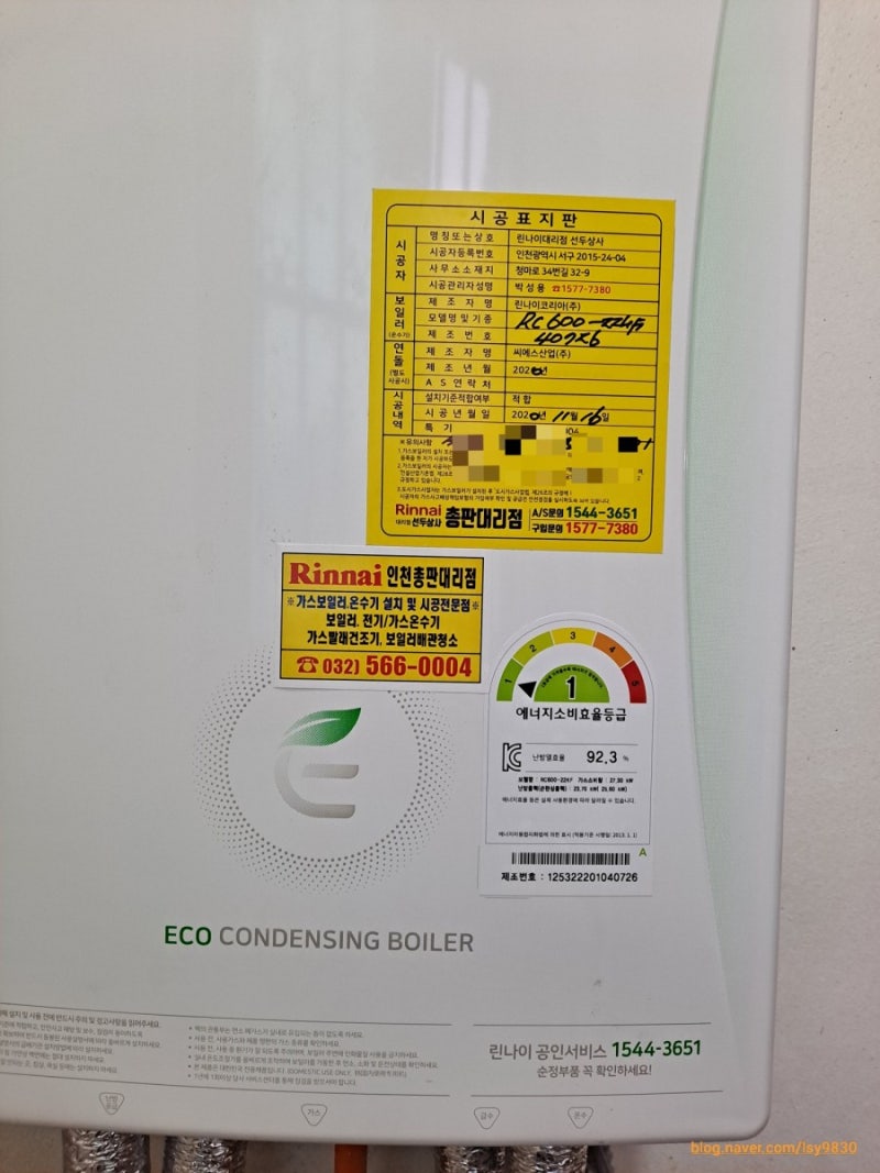 새로 설치한 린나이 가스 보일러 RC600-22KF 모델입니다.22,000Kcal 용량으로 30평대에서 충분히 사용할 수 있는 용량입니다.연통 연결 후 연통의 이음매 부분을 폐가스 누출을 막기 위해 전용 내열 실리콘으로 막았습니다.배관 청소 후 도시가스 플렉시블을 새로 교체합니다.배관 연결 후 내열 실리콘으로 마감하여 가스 누출이 없도록 합니다.
