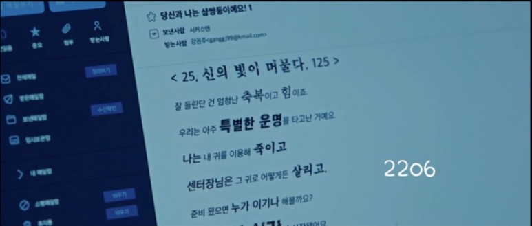 당신과 저는 샴쌍둥이에요.나는 내 귀를 이용해서 죽이고, 센터장은 그 귀로 어떻게든 살리고, 준비가 되면 누가 이긴다고 할까요?서커스맨은 게임을 하나 봐요.강권주 센터장에게 도발하면서 경고 문자를 보내고 살인을 시작합니다.