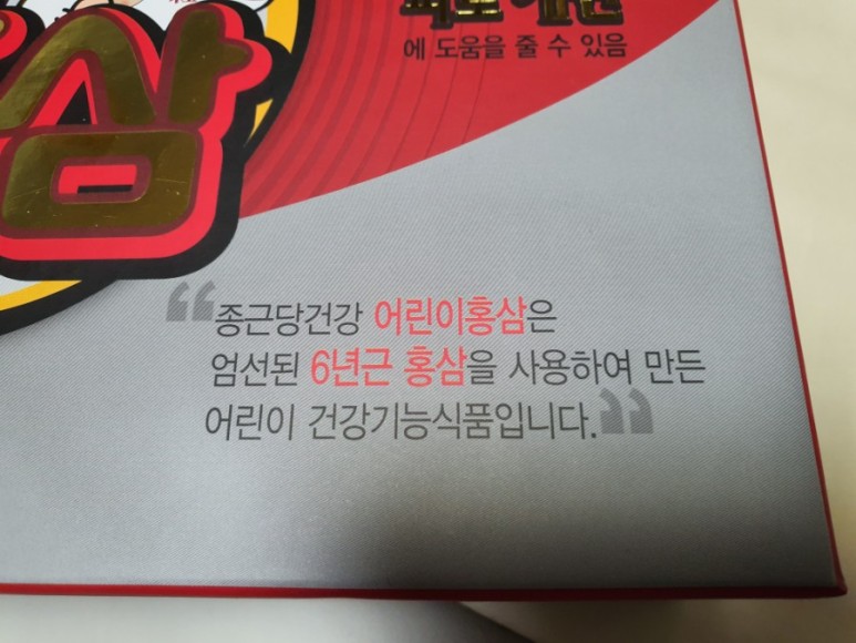 종근당 건강어린이 홍삼은 엄선된 6년근 홍삼을 사용하여 만든 어린이 건강기능식품입니다.종근당에서 나온 어린이 홍삼도 6년근 홍삼으로 한다고 합니다.오, 좋아요.좋다.(웃음)