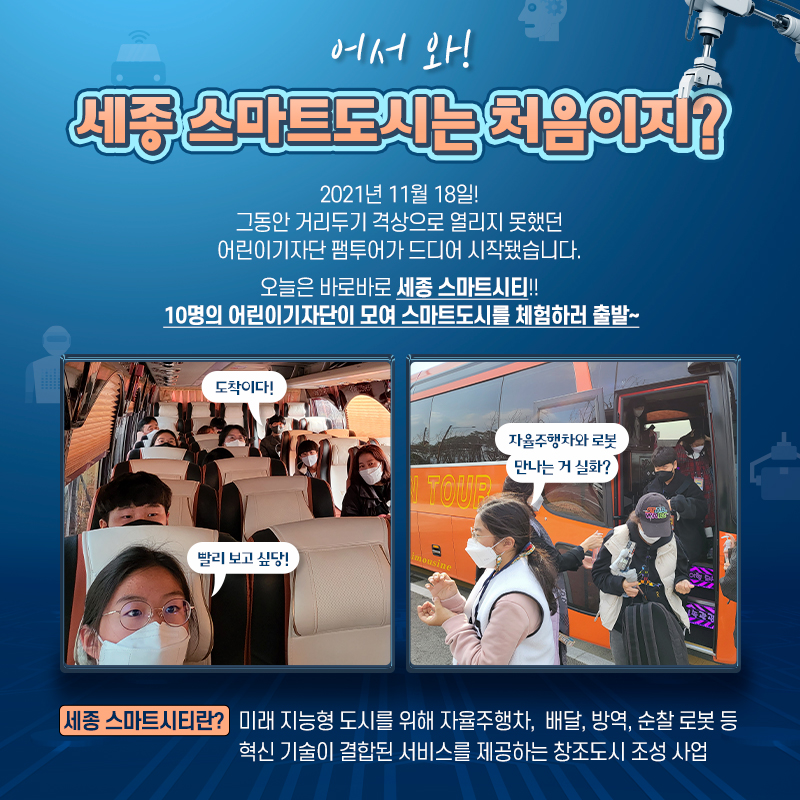 오늘은 세종 스마트시티!10명의 어린이 기자단이 모여 스마트도시를 체험하러 출발~