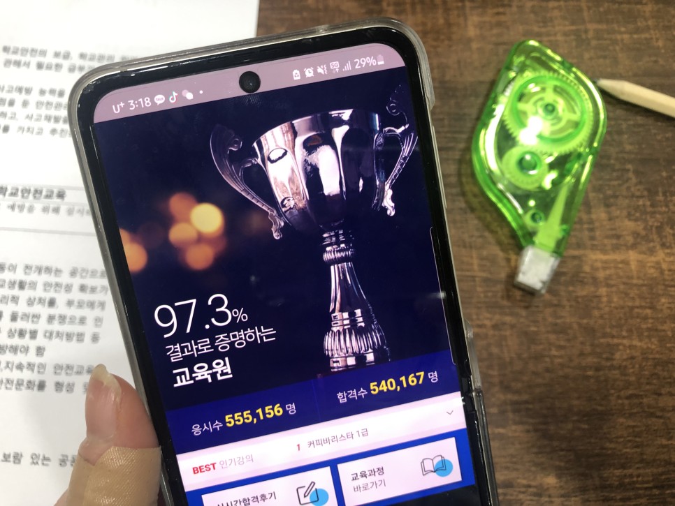 안전교육지도사 1급 1회에 합격한 학습전략이라면 인강을 들을 때는 인강의 내용에만 집중한 것이 됩니다! 가끔 가정에서 공부하다 보면 생활소음으로 TV소리나 아이들이 떠드는 소리가 들려오기 마련인데, 저는 가족이 모여 있는 거실을 빠져나가 작은 방으로 들어가 인강을 수강했습니다!인강을 수강할 때는 가족들에게도 양해를 구하고 방해하지 말아달라고 했고, 퇴근 후 인강시청과 기출문제 답안을 매일 2시간 정도 했습니다! 사람마다 차이는 있지만 보통 3주면 충분히 자격증 취득에 성공하는 것 같았습니다.저는 빠른 편도 아니고 느린 편도 아니고 적당한 편이라고 생각해요!