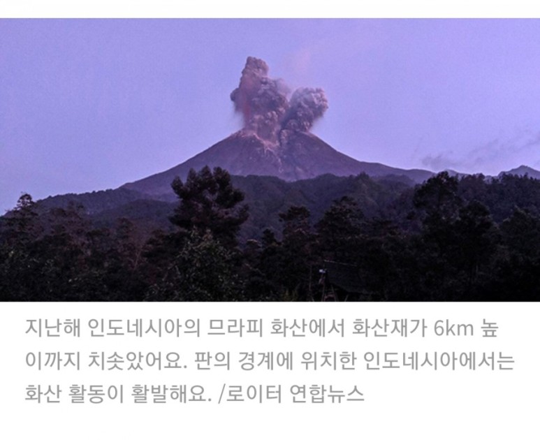 ◇화산재가 150억 톤이나 방출되었습니다.더 놀라운 사실도 있습니다. 화산 폭발이 전 세계에 큰 영향을 준 적도 있습니다. 1815 년 4 월 인도네시아 숨바와 섬에 있는 탐보라 화산 대폭발 사건입니다. 이때 분출된 화산재가 150억 톤이나 되며, 이때 방출된 에너지는 지구상에서 발생한 그 어떤 지진, 태풍, 토네이도보다 강력하고 컸습니다. 대폭발로 인해 4200미터의 탐보라 산은 약 2730미터 정도로 낮아져 버렸습니다. 인도네시아는 화산재로 뒤덮여 사흘째 캄캄한 밤만 이어지면서 잠바 섬에서만 9만2000여 명이 숨지는 비극이 발생했습니다.세계 각지에서도 재해가 발생했습니다. 화산재가 지상 30~40km 높이로 성층권까지 올라가 오랜 기간 머물면서 전 지구에 영향을 미쳤기 때문이죠. 화산재가 햇빛을 가리는 바람에 지구 평균기온이 섭씨 1도 이상 떨어졌고, 유럽에서는 화산폭발 이듬해인 1816년 여름이 사라졌다는 말까지 나왔다고 해요.