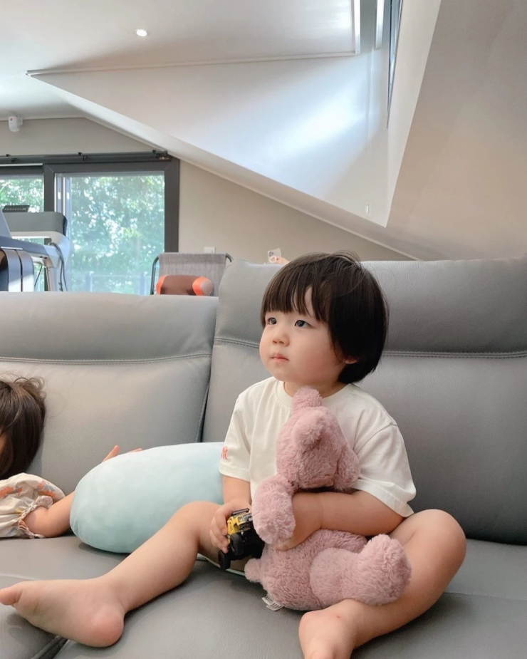 이용진은 17일 오후 인스타그램에 아들 윤재 군의 사진을 올렸다. 사진 속 윤제는 분홍색 곰인형을 끌어안은 채 한 곳을 시선을 집중해 바라보고 있다.통통한 볼살과 함께 귀엽고 잘생긴 용모를 지닌 윤재는 랜선 아주머니와 삼촌들의 심장을 아프게 했다. 장난기 어린 인형 같은 비주얼을 자랑했던 윤재는 올해 만 2세다.
