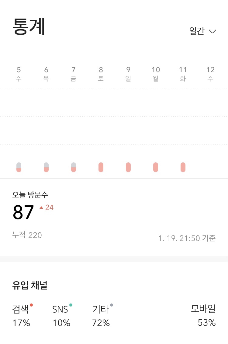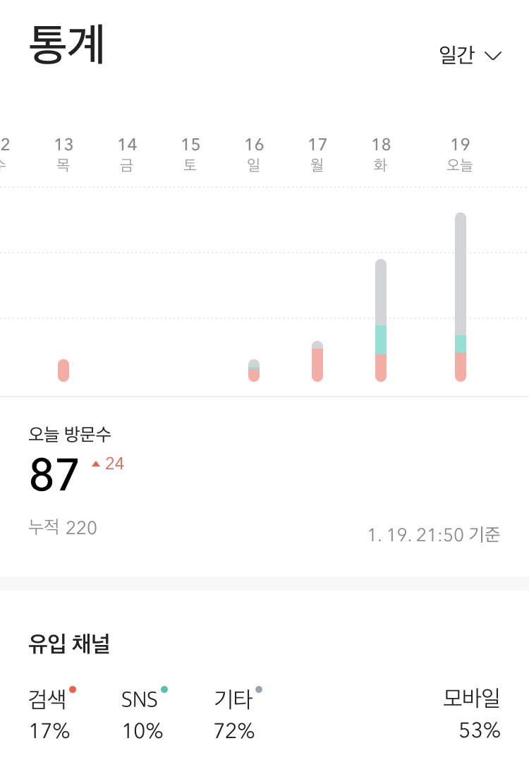 1월 19일 승인완료 후 누적방문수입니다.