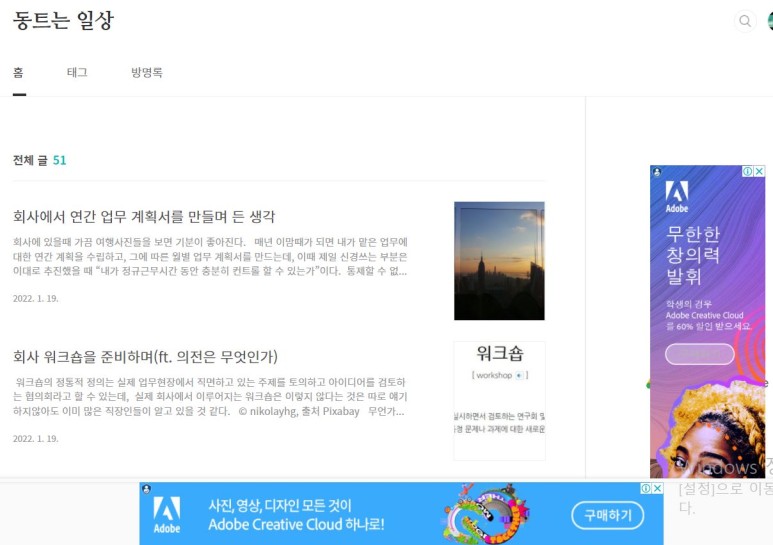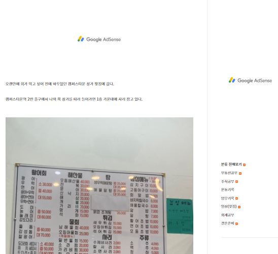 그때의 불편함을 기억하며 저도 본문에 붙는 광고는 상단 한곳에 최소화하여 적용하였습니다.