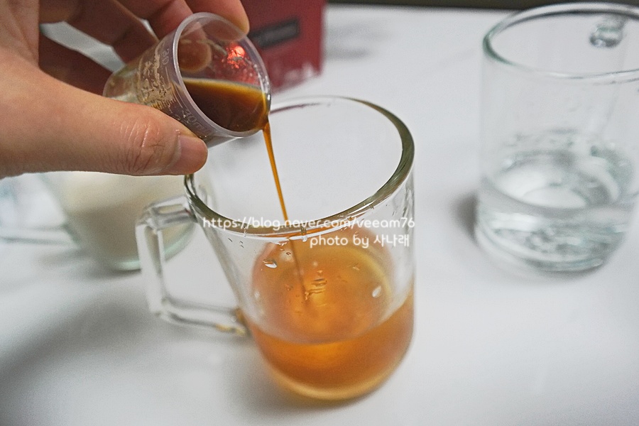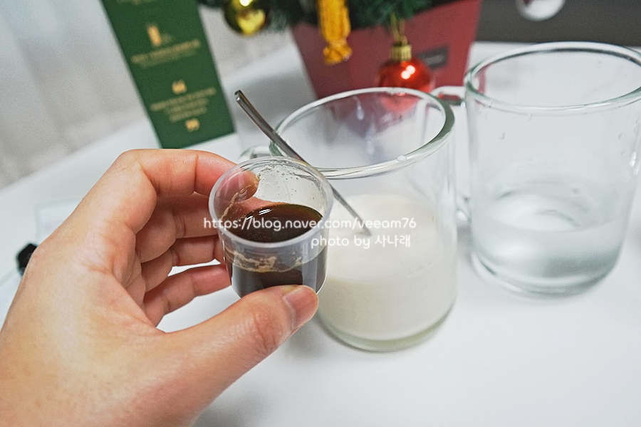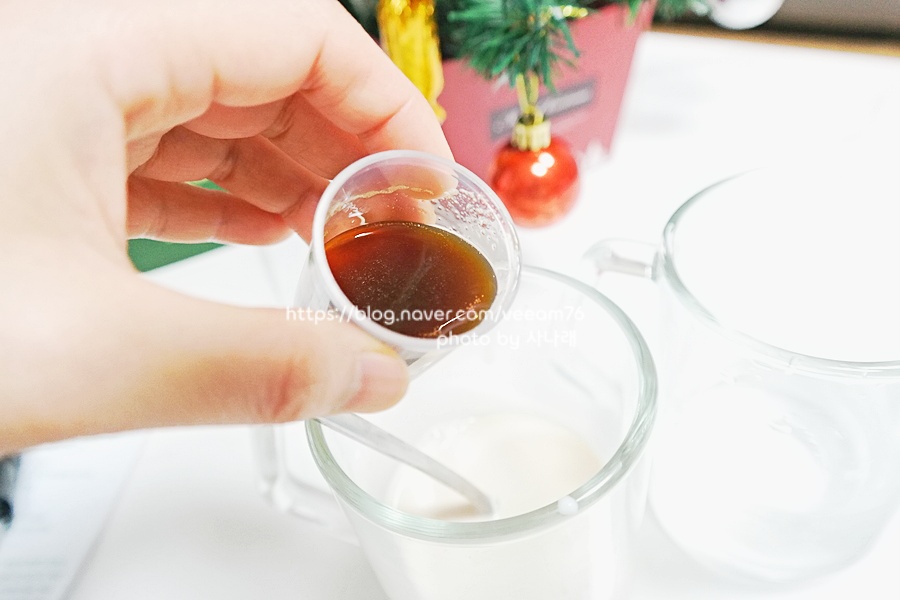 그냥 우유나 물 대신 이렇게!!! 고무배추 시럽을 넣고 대령을 해봤습니다.각자의 취향에 맞게