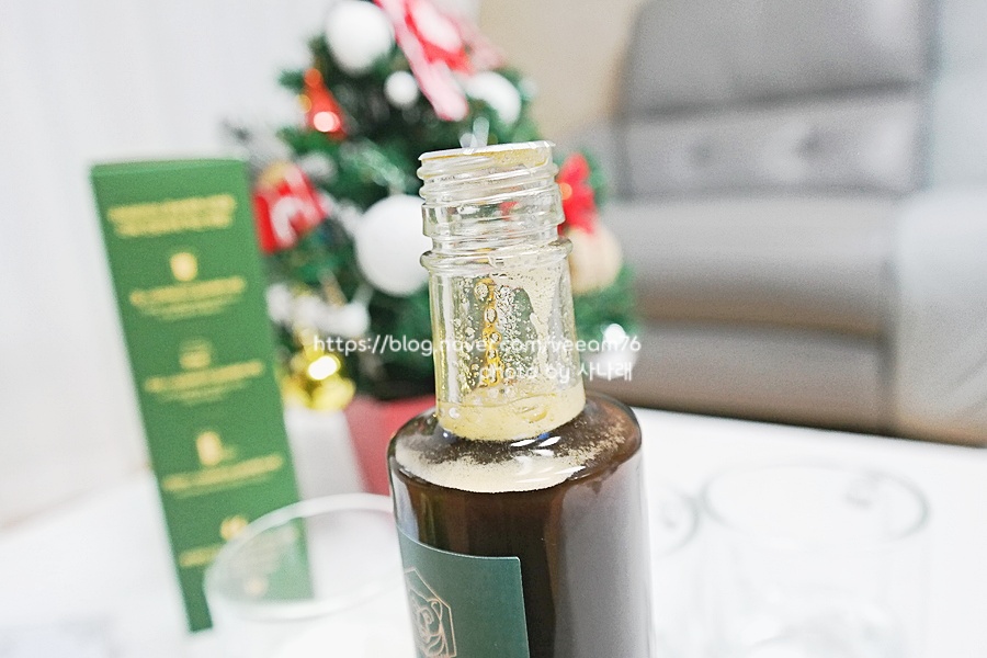 처음 제품을 봤을 때 거품이 있을 수 있어요! 이것은 병에 담는 과정에서 생긴 기포가 배송 중에 흔들리면서 위로 올라와 거품이 생긴 것처럼 보인다고 합니다. 제품 이상이 아니니 걱정하지 말래요.