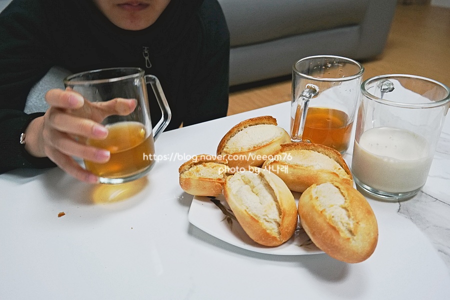 아침은 프렌치 롤이었나? 바게트 빵인데 코스트코 반죽을 사서 구웠대요정말 담백하고 맛있어요.