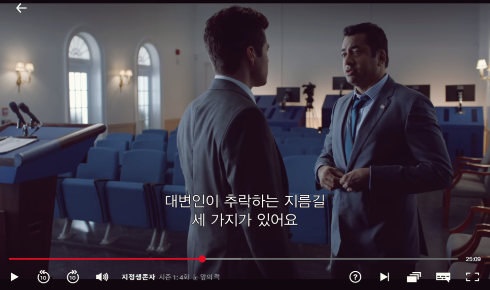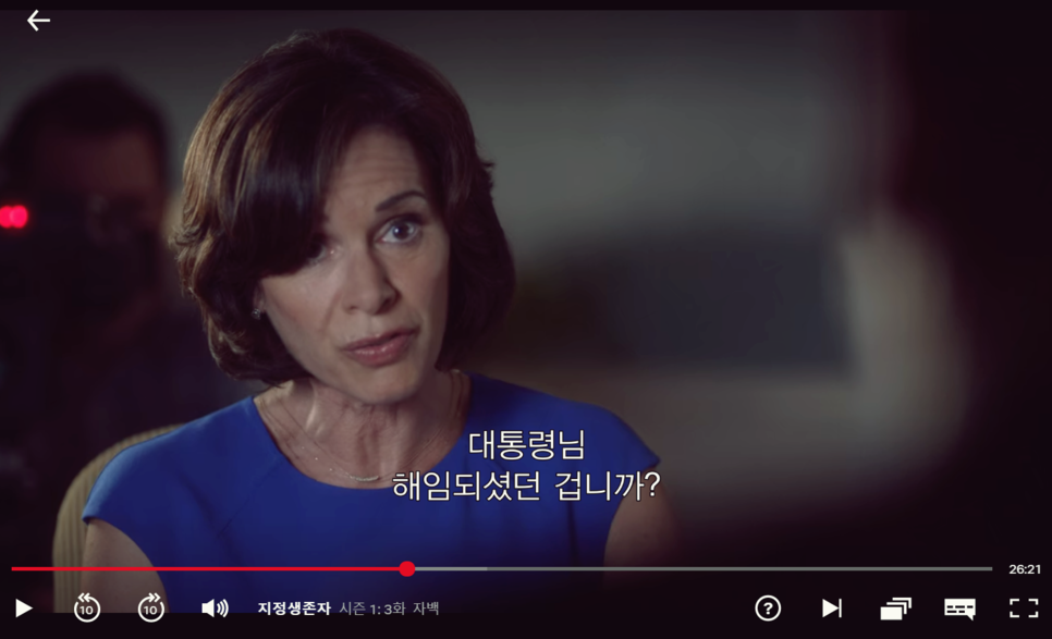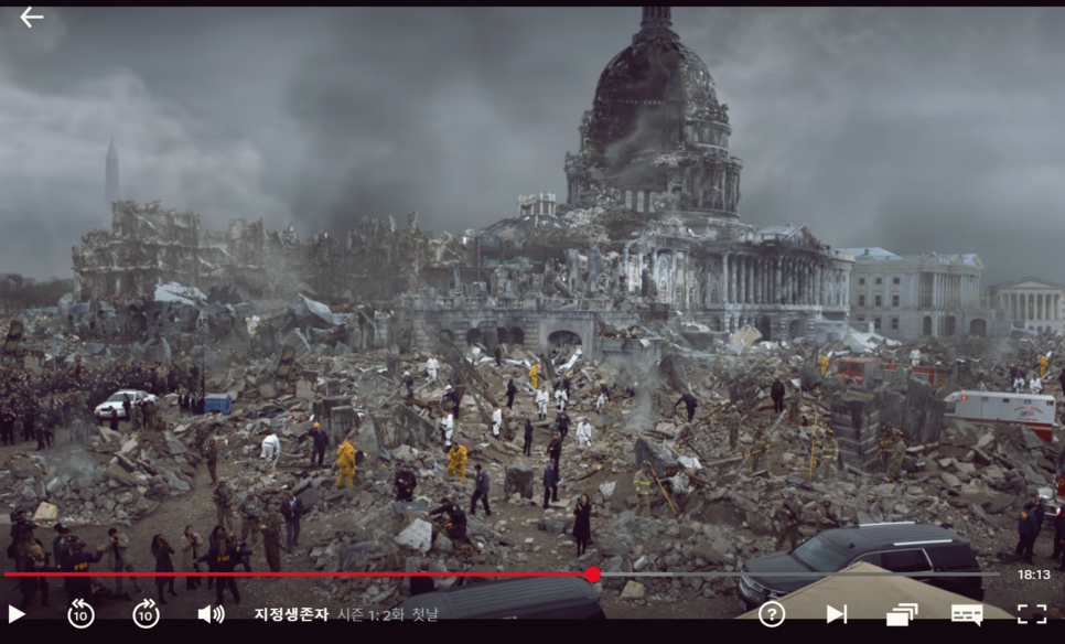시즌 1편당 40분 정도의 시간으로, 총 21부로 제작되고 있는 미국 드라마 지정 생존자는 1편부터 흡입력이 장난이 아니었어요. 한 시즌 21화를 다 보는데 며칠 안 걸릴 정도로 다음 이야기가 궁금해서 자꾸 다음 회를 자동으로 누르게 되어 있더라구요.”작품이 시작된 지 몇 분 지나지 않아 연이어 터지는 사건이나 사고를 수습하는 스토리를 보는 것이 흥미진진한데, 첫 번째 사건이 바로 국회 신년연설에서 폭탄테러가 발생해 미국의 대통령뿐 아니라 내각 관료, 국회의원 등 천여 명의 주요 인사들이 몰살당하는 상황이 벌어집니다.”