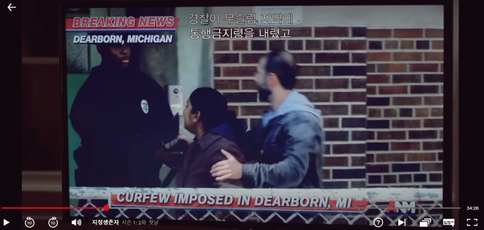 제2화의 주된 쟁점은 인종차별에 대한 실상을 밝히는 것이었습니다.아직 적이 누구인지 정확하게 공표되지 않았음에도 무슬림들을 무조건 옥죄는 시가 생겨났어요.심지어 백악관에 근무하는 직원까지 출근하는 길에 얼굴만 보고 검열을 하다가 직장이 확인되고 나서는 보내주는 상황까지