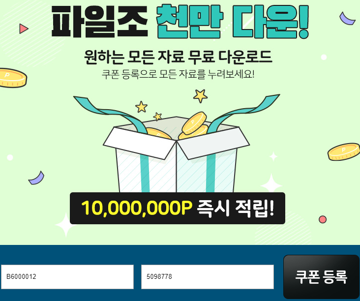 쿠폰코드 입력란에 위의 코드를 그대로 적어주시면 무려 1000만 포인트를 받을 수 있는데 솔직히 처음에는 가입을 하면 사기를 당하거나 정보를 얻을 수 있지 않을까 생각했지만 신규 회원이든 기존 회원이든 다 지급된다고 하니 걱정하지 않으셔도 될 것 같습니다.