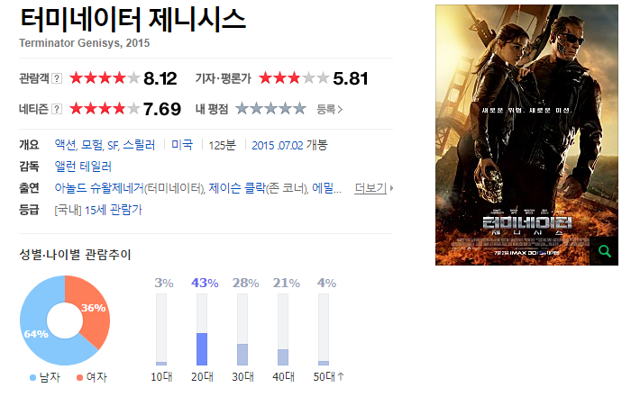 사흘 일정으로 시골에 다녀왔는데, 개봉 첫날 터미네이터 제네시스를 보지 못했어요. 그 대신 저는 오늘 비교적 일찍 그것을 보았습니다:며칠간의 운동부족 후 파티는 거의 미쳐가고 어제 다시 열심히 일하기 시작했습니다. 그리고 지금 저는 리뷰를 쓰고 있습니다 저는 제임스 카메론 감독과의 True Followings에 대한 인터뷰를 보고 큰 기대를 했어요. 비록 2부작 터미네이터 수준에는 못 미쳤지만 최근에는 속편 제작 공식을 충실히 구현하는 영화를 만들고 있습니다. 지미 카메론 감독이 영화를 칭찬한 이유를 알고 있어요. 쥬라기 월드에 이어 터미네이터 제네시스도 원작을 존중하도록 만들었습니다. 쥬라기 월드가 그랬던 것처럼, 우리가 인수인계하려고 했던 원본의 장면을 적절히 호밍하고 원본에 대한 새로운 요소를 추가했습니다. 이것은 경의와 표절에 대한 생각을 떠오르게 합니다.