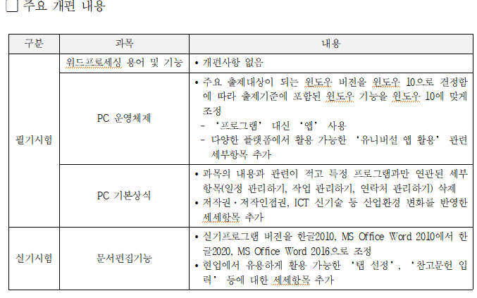 빠르고 정확한 문서작성능력을 평가하고 있는 시험이지만, 향후 기업에 입사를 하게 되면서