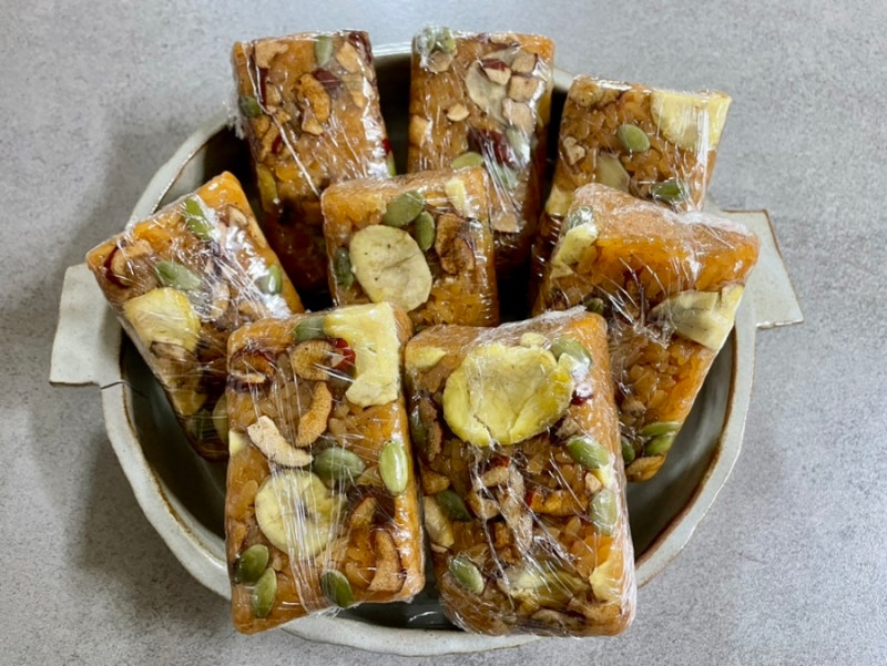 냉동이 아닌 당일 생산하여 갓 만든 떡을 보내주시니 먹을 만큼 꺼내 드시고 남은 떡은 냉동 보관해주세요.묵직한 양을 보여주는 식사 대용 떡의 약식 1kg은 총 8개로, 모두 개별 포장이기 때문에 먹기 편할 것입니다.