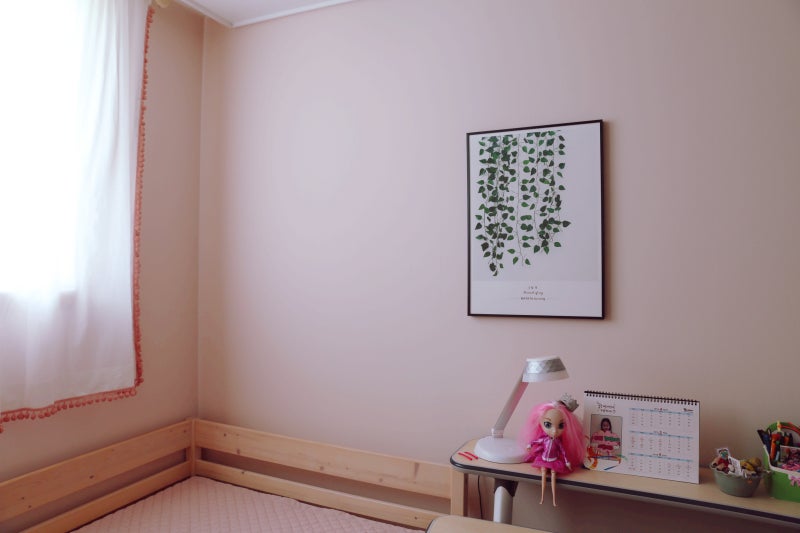 In primo luogo, invece di fare carta da parati con uno schema ovunque, sarebbe meglio costruire carta da parati con un modello o un disegno sul lato del letto o sulla scrivania. E se lo schema non è troppo affollato e scegliete un prodotto calmo, avrà un effetto di wallpaper interno. Sembra che l’illustrazione dei tre polli, che è anche carina nello spazio sopra, abbia perfezionato la decorazione murale della stanza dell’I-B-B-B-B.