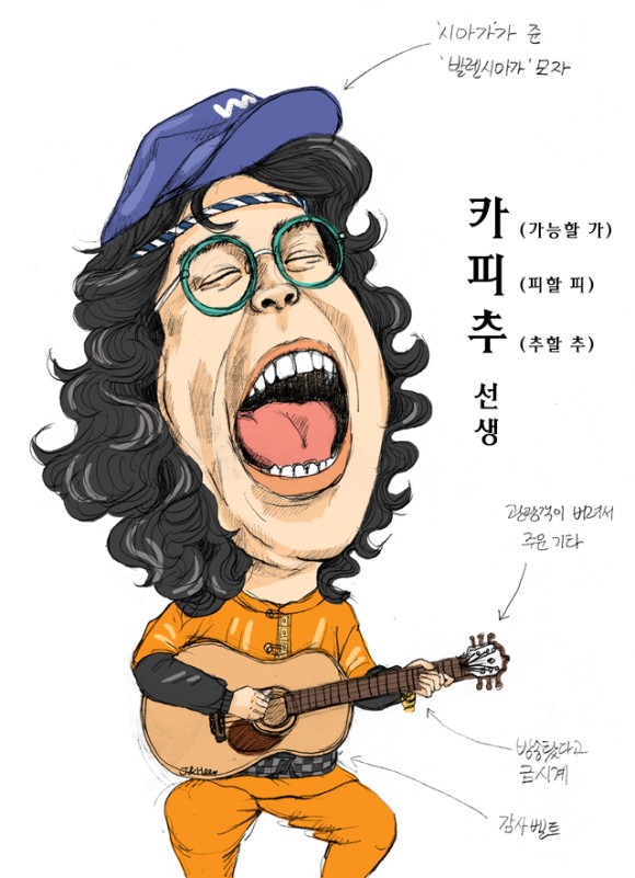 태양 아래에는 새로운 게 없단 말인가카피츄 선생님이 부르시는 노래는 혼자 만들었다지만 우리 모두가 아는 노래다.원곡을 알기 때문에 가사와 음정을 바꾸어 부르는 데서 오는 재미를 느끼게 된다.몇 번 탄다고 발렌시아가 모자에 구찌시계에 루이비통 벨트까지 차고 세속적인 것에 관심이 없다는 카피추 선생. 개그맨 추대엽. 아직 긴 무명의 예술가들에게 그는 꿈과 희망이 될 것이다.언제까지나 이 인기와 명성을 유지하기를.파이팅입니다
