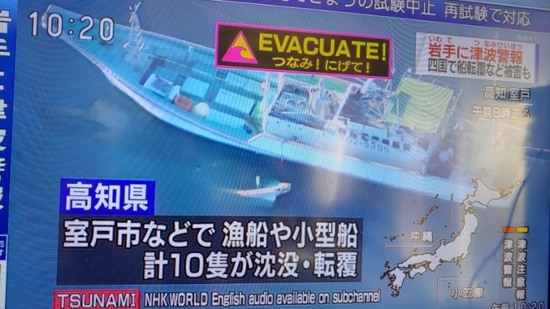 쓰나미!!! 쓰나미!! 도망쳐!! 라고 해!! 2022, 1, 16, 이 시간 닛폰방송에서 일제히 속보방송중