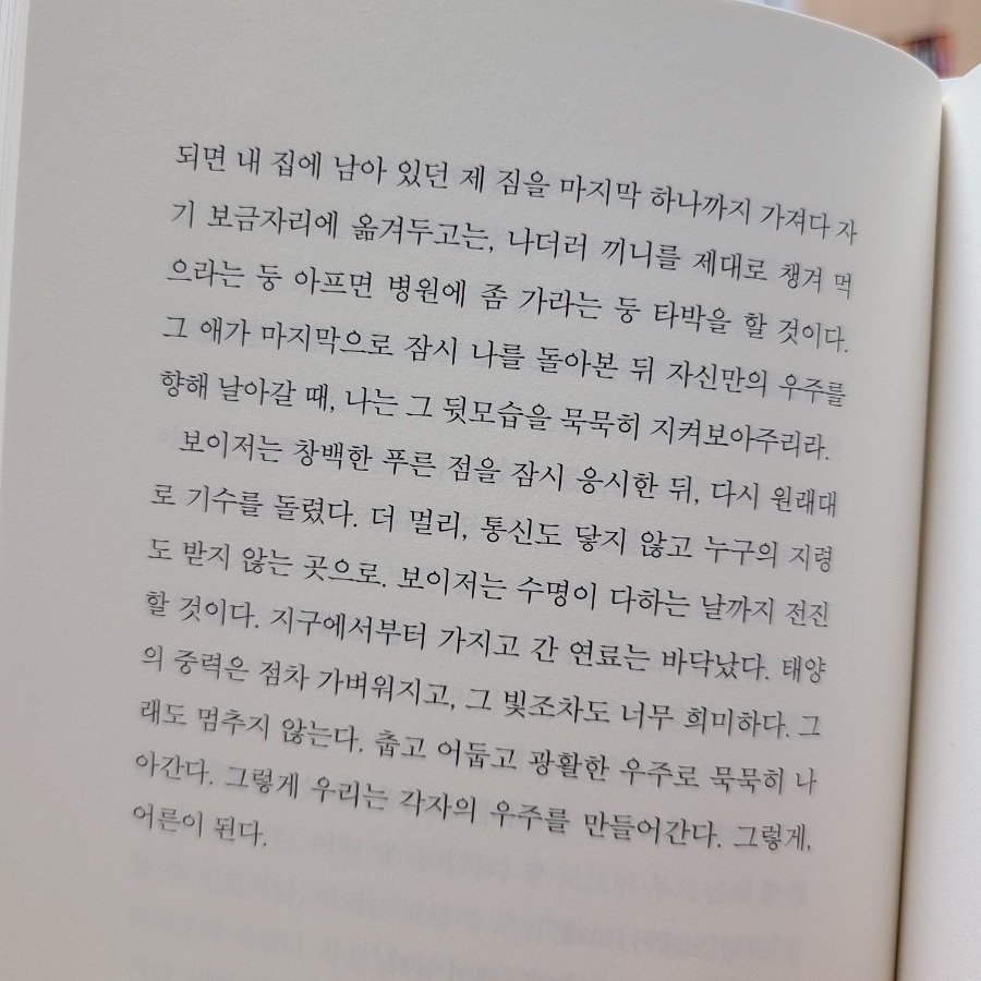 그래도 멈추지 않아춥고 어둡고 광활한 우주로 묵묵히 나아간다그렇게 해서 우리는 각자의 우주를 만들어간다.맞아, 어른이 될 거야