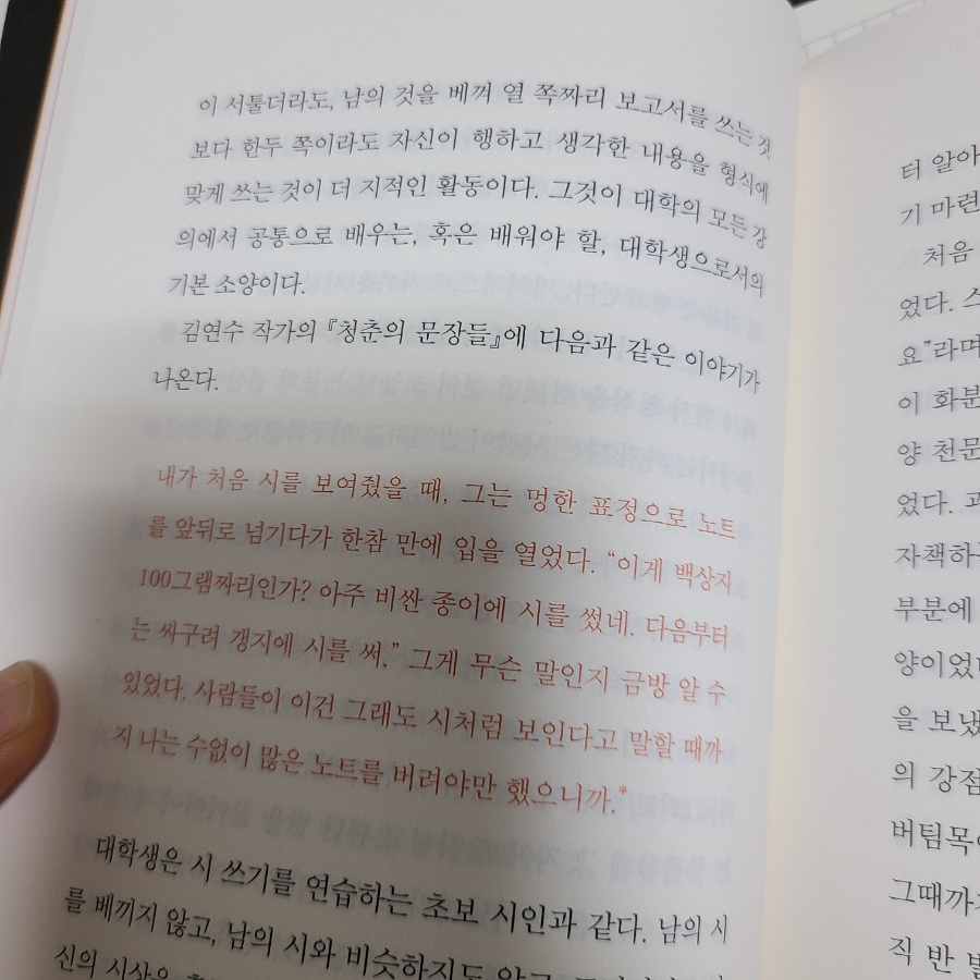 사람들이 이건 그래도 시 같다고 말할 때까지 나는 무수히 많은 노트를 버려야 했으니까 김영수 작가의 청춘의 글.