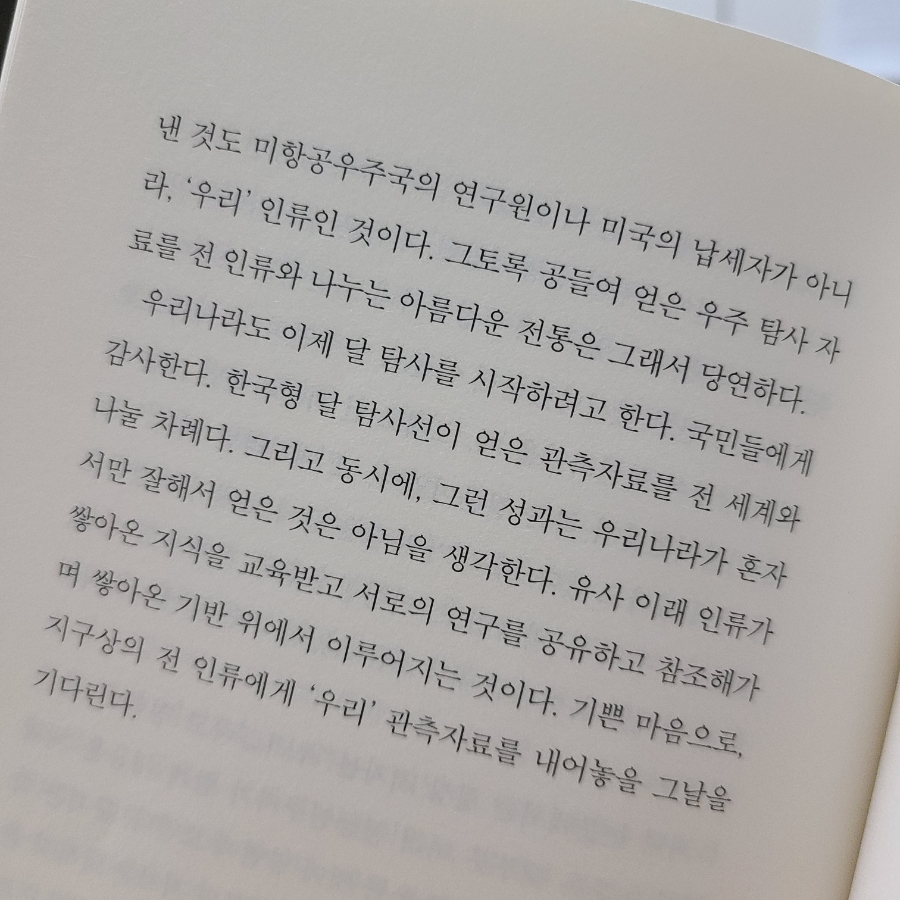 그런 성과는 한국이 한 사람만 잘해서 얻은 것이 아님을 생각한다.기쁜 마음으로 지구상의 전 인류에게 우리에 대한 관측 자료를 내놓을 그날을 기다린다.