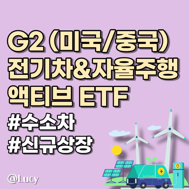 G2라는 단어에서 짐작이 가시는 분들도 계시겠지만 G2는 뭘 뜻할까요?네, 맞습니다. 세계 Top 2, 미국과 중국입니다미국과 중국의 전기자동차, 자율주행 기술주, 그리고 수소 관련 기업에 투자하는 Active(액티브) ETF입니다.