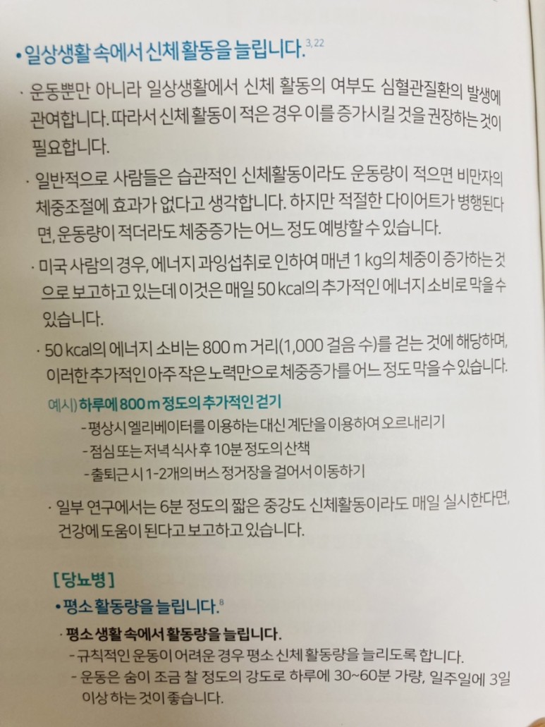 일부 연구에서는 6분 정도의 짧은 중강도 신체활동도 매일 하는 것이 건강에 도움이 된다고 보고하고 있다고 하네요.권고 유산소 운동 일주일에 3번 이상 중간 강도로! 30분 이상!