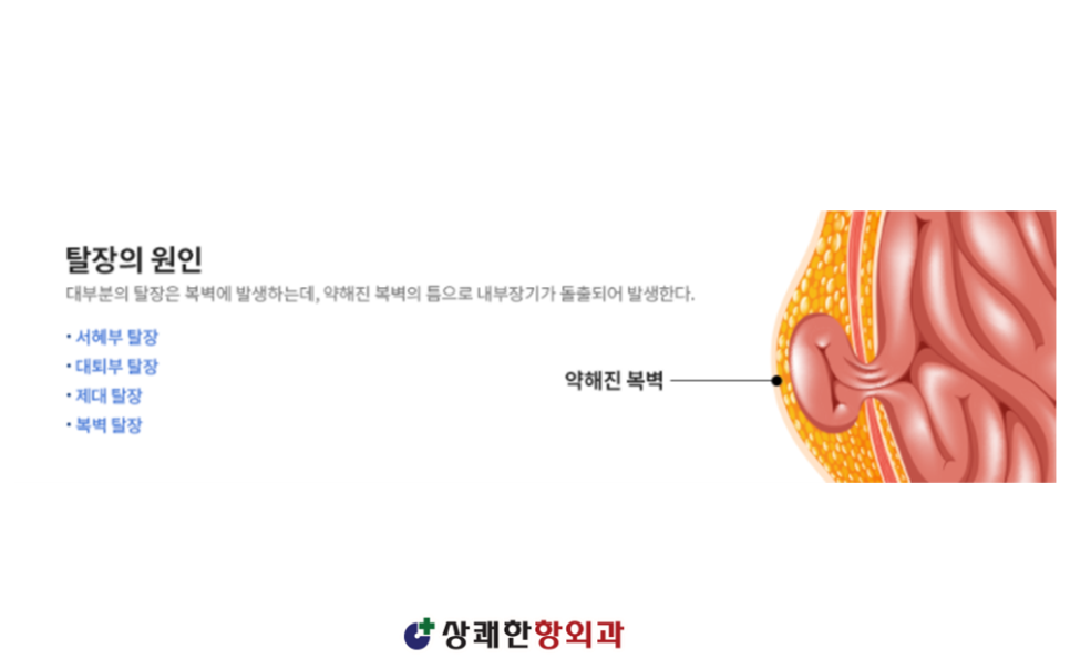 수술적 치료만이 유일한 치료법인 질환으로 탈출한 장기조직을 원위치로 돌려놓고 벌어진 틈을 메우는 수술이 필요합니다.