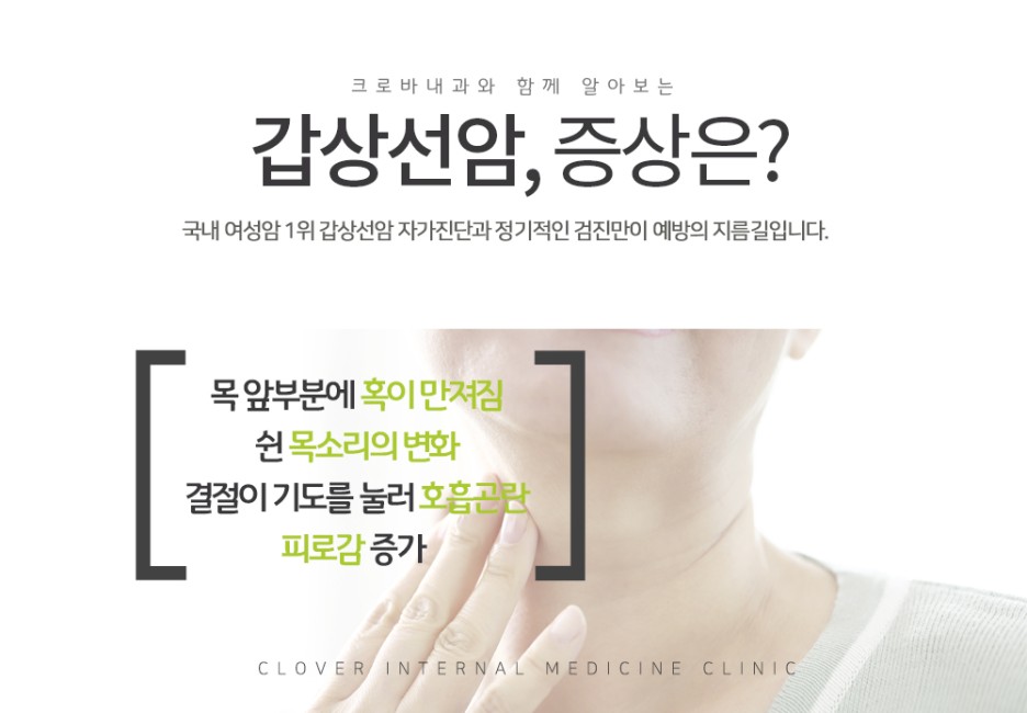 평소 목 주변에 불쾌감이 있거나 갑상샘암이 의심되는 증상이 나타나면 세종시내과 추천 클로버내과에서 검진을 받는 것이 좋습니다.