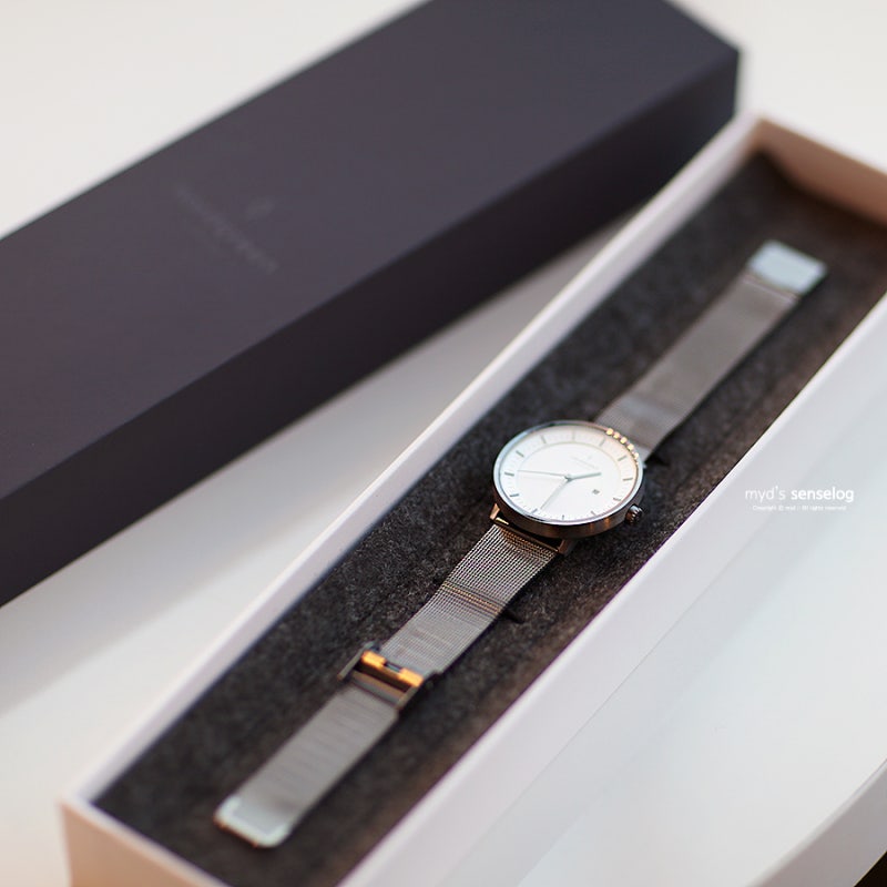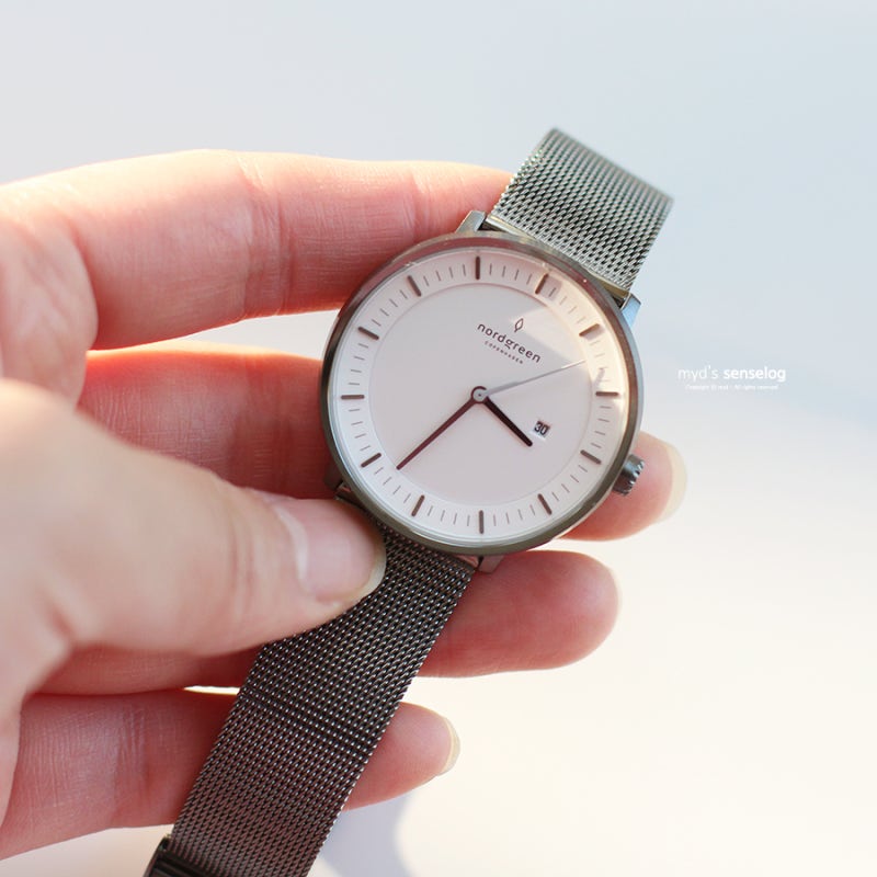 노드그린 손목시계는 심플하고 실용적인 북유럽 스타일의 디자인이 특징입니다.필로우소파는 중성적인 느낌의 여성 메탈 손목시계로 연령대 상관없이 편안하게 착용하시기 좋을 것 같습니다.